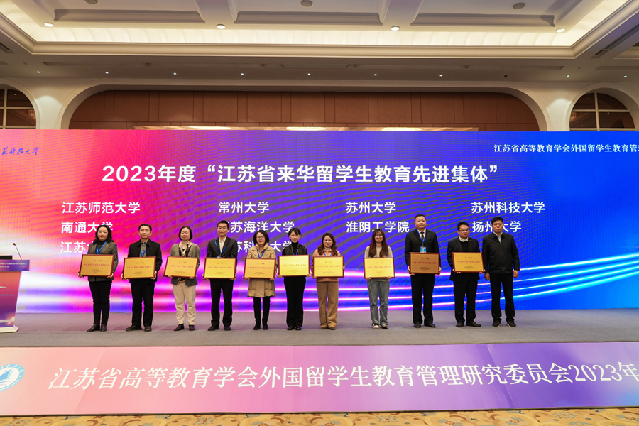12月29日,江苏省外国留学生教育管理研究会2023年年会在江苏科技大学举行。江苏科技大学副校长周宏根,江苏留管会副理事长兼秘书长张海军,副理事长俞晓南,江苏省教育厅、江苏省公安厅、江苏省外事办公室等相关单位负责同志出席大会。