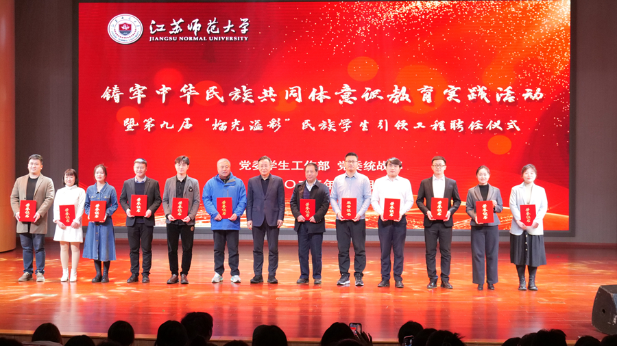 12月29日晚,安博·体育铸牢中华民族共同体意识教育实践活动暨第九届“榴光溢彩”民族学生引领工程聘任仪式在泉山校区马可音乐厅举行。校党委常委、副校长张玉勤出席本次活动并讲话,党委宣传部、党委统战部、党委学生工作部、保卫处、团委等相关职能部门负责同志参加活动。