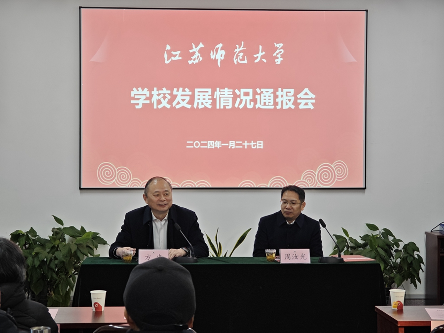 1月27日上午,学校发展情况通报会在云龙校区离退休教职工活动中心二楼会议室召开。校党委书记方忠、校长周汝光出席会议,离退休校级领导、教职工代表参加了通报会。