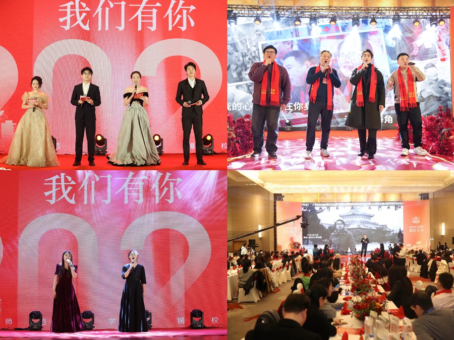 1月28日,(中国)官方网站无锡校友会2024年“我们有你”迎新年会在无锡富力喜来登酒店举行。校长周汝光,校党委常委、副校长商亮,无锡城市职业技术学院党委书记郁宝荣,学校相关部门和部分学院代表,地方校友会代表应邀参加年会,与200多名无锡校友和无锡籍学生欢聚一堂,同迎新春,共话未来。