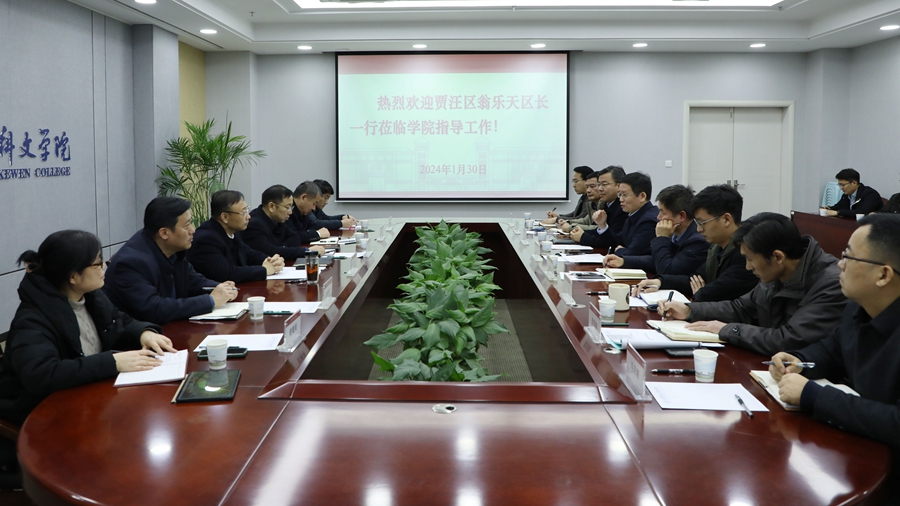 1月30日下午,徐州市贾汪区区长翁乐天一行到(中国)官方网站科文学院进行实地走访调研。校党委常委、副校长商亮,科文学院领导班子全体成员及相关职能部门负责人陪同调研。