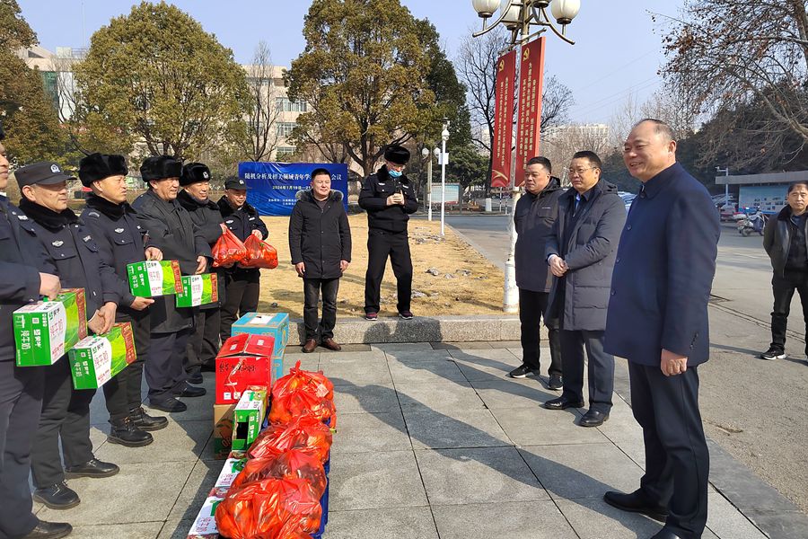 方忠与校卫队员亲切交谈,仔细了解假期校园安保工作情况,并代表学校向春节期间坚守安保一线的教职员工致以节日问候和美好祝愿,感谢大家为学校事业发展提供坚强安全保障。方忠为值班人员发放了慰问品,希望保卫处全体干部职工再接再厉,共同维护好校园的安全稳定。