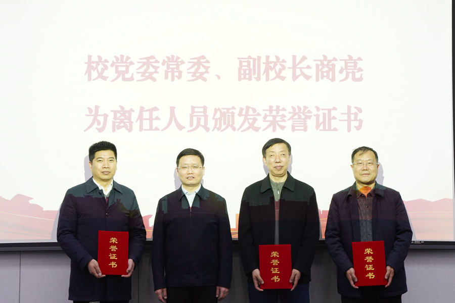 会议第一阶段,审议并通过理事会届中理事调整方案。因岗位变动等原因,对相应的理事作调整。校党委常委、副校长商亮为离任理事颁发荣誉证书,为新当选理事颁发聘书。