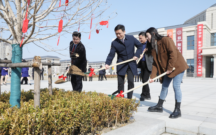 书院揭牌后,师生代表为庆祝书院成立所栽植的四株金桂树培土。桂树是崇高、荣誉、友好和吉祥的象征,祝福科文学子人生“折桂”。选择植树节当天成立书院,取十年树木百年树人之意。四个书院以“崇德、求真、至善、尚美”命名,寓意以德为先,培养求真、向善、尚美科文人,旨在引领全体师生走进书院、礼赞文化、赓续文脉,在习近平总书记视察过的潘安湖畔,始终高扬理想之帆,坚定奋斗目标,涵养精神品格,汲取蝶变力量,培育时代新人。