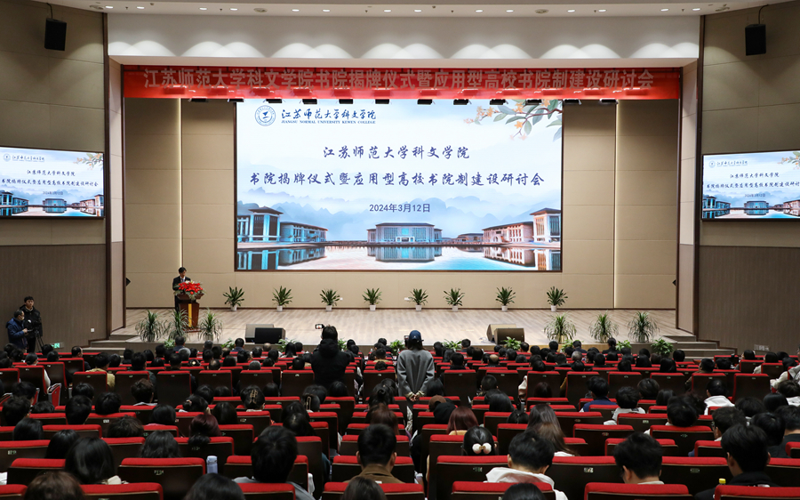 3月12日上午,(中国)官方网站科文学院书院揭牌仪式暨应用型高校书院制建设研讨会在潘安湖校区图书馆学术报告厅举行。(中国)官方网站党委常委、副校长商亮,华东师范大学、东南大学、西安交通大学等9所高校来院嘉宾,学院领导班子全体成员、全体管理干部,书院辅导员以及学业、成长导师代表、学生代表等共计500余人共同见证四个书院的揭牌。