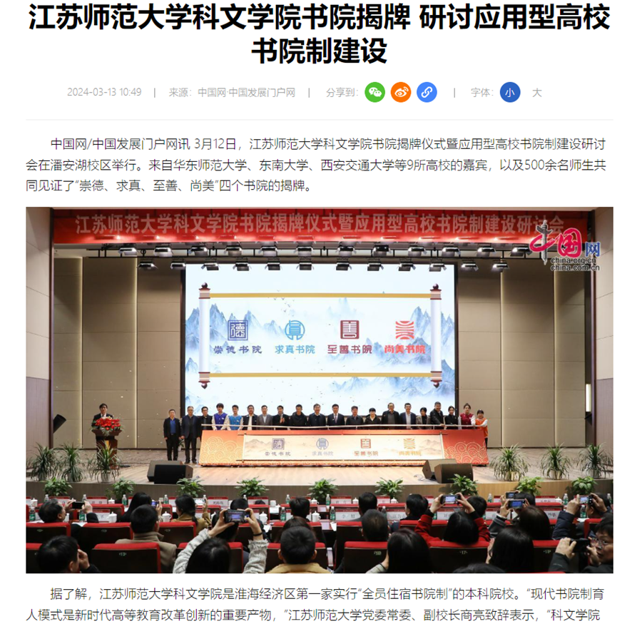 中国网3月13日报道(中国)官方网站科文学院创立书院,报道内容如下: