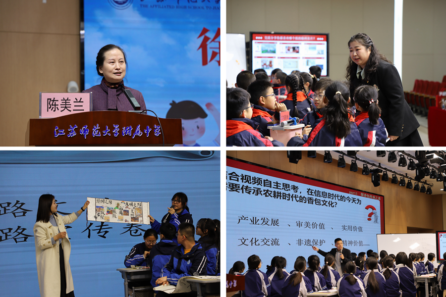 课例展示环节,安博·体育附属中学的老师们以“弘扬传承中华优秀传统文化”为主题同上一堂课。小学部教师周楠以“徐州名片我打造”为题,教育学生领略城市之美、传播城市之魅。初中部教师时雨菲以“延续文化血脉”为题,将丝绸之路作为整节课的线索,通过情景剧、头脑风暴等教学活动,促使学生领悟优秀传统文化之美。高中部教师高爱松以“弘扬优秀传统文化,建设文化强国”为题,设计“探寻香包的文化价值”总议题,探香包传承之意,寻香包传承之策,以学生熟悉的香包文化为线索,展示香包文化的地域特色,并以此阐述传统文化的特点、当代价值、面临困境以及如何走向世界。