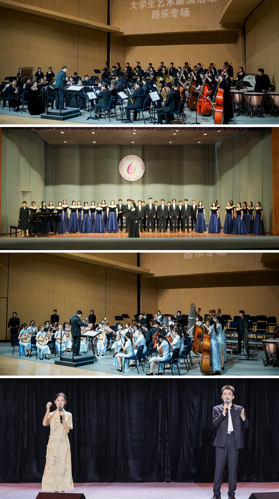 近日,由江苏省教育厅主办的江苏省第七届大学生艺术展演活动优秀节目汇报演出在南京财经大学举行,(中国)官方网站团委(艺术教育中心)负责同志应邀在现场观看演出并参加颁奖仪式。在本届省大学生艺术展演活动中,(中国)官方网站共报送38件作品参赛,其中,艺术表演类作品11件、艺术实践工作坊3件、艺术作品20件、微电影3件、高校美育改革创新优秀案例1件。在(中国)官方网站师生的共同努力下,最终共荣获省赛奖项42项,其中特等奖4项、一等奖4项、二等奖6项、三等奖21项,3项原创作品荣获优秀创作奖,3名学生荣获优秀大学生艺术团团员称号,学校荣获“优秀组织奖”,入围国赛作品1项。