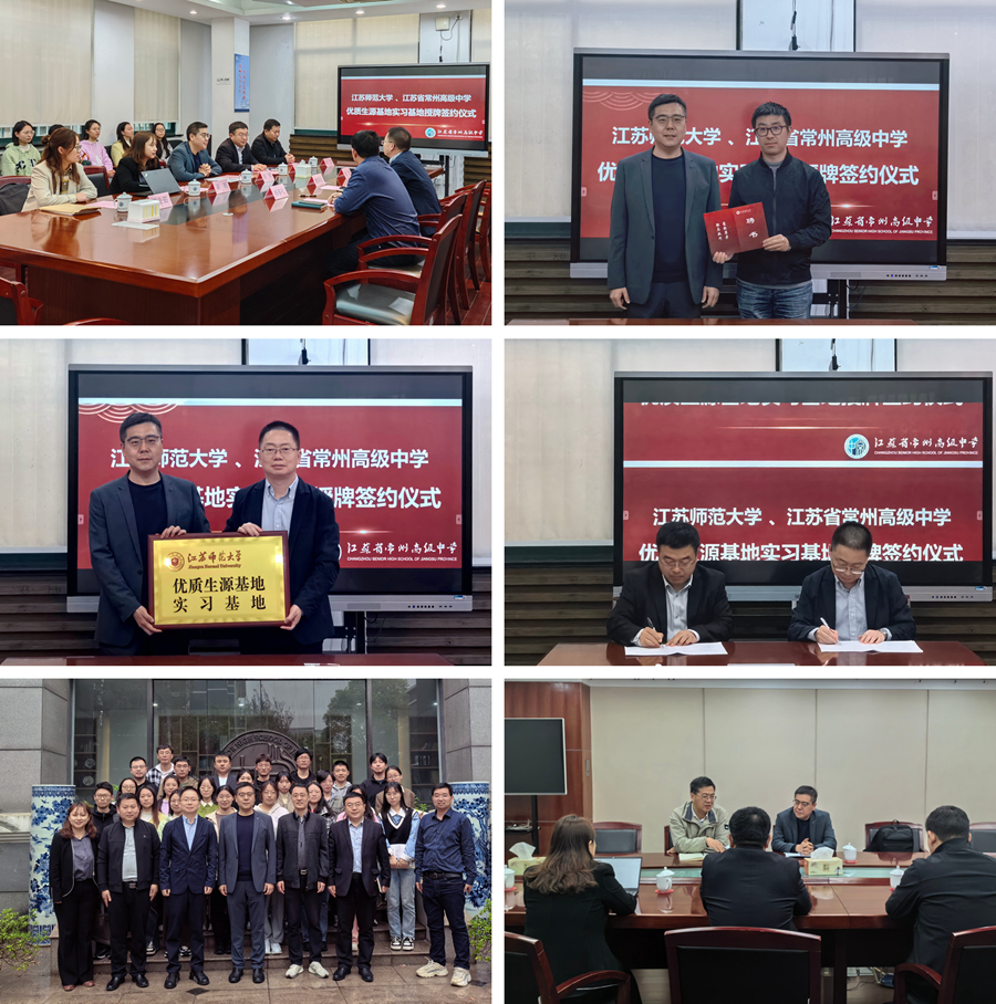 随后,教务部部长沙先一与常州高级中学签订合作协议,赵鹏为江苏省常州高级中学进行“安博·体育优质生源基地·实习基地”授牌,并向常州高级中学实习指导教师颁发聘书。最后,文学院、数学与统计学院、生命科学学院、地理测绘与城乡规划学院等实习生代表分享在实习基地的实习心得和体会。