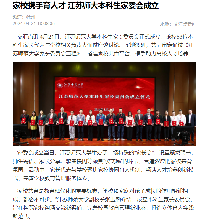 交汇点新闻4月21日报道(中国)官方网站成立家长委员会,报道内容如下: