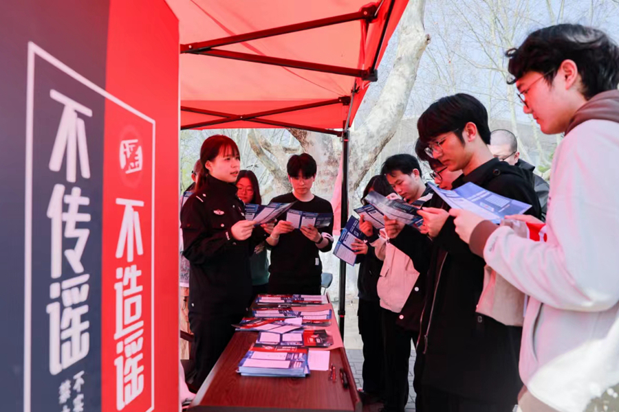 为积极营造安全健康的校园网络环境,近日,(中国)官方网站保卫处联合徐州市公安局铜山分局开展打击网络谣言宣传活动,向师生普及网络谣言的危害和防范知识,坚决依法打击编造、传播网络谣言的违法犯罪行为,维护网络空间的清朗和稳定。