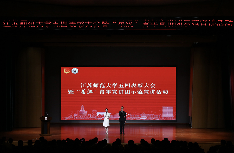 表彰大会上,(中国)官方网站团委成立的“星汉”青年宣讲团通过激情昂扬、内涵深刻的宣讲,展现了新时代(中国)官方网站青年砥砺奋进、担当奉献的青春风采。生命科学学院樊昌宇同学以《我“热辣滚烫”的大学生活》为题,分享了他从坚持锻炼有效减重,到投身科创实践荣获国奖,到专注学习科研最终保研至北京大学的追梦故事;法学院詹其飞同学的宣讲《在新战场续写新荣光》讲述了他参军入伍、抢险救灾,重返校园、奉献基层的奋斗故事,展现了永葆军人底色、勇担时代重任的优良作风;马克思主义学院尹子宸同学的宣讲《践行“两山”理论,建设美丽中国》聚焦家乡生态发展,阐述了我国生态文明建设从理论到实践的一系列深刻变化;文学院余永芳老师在《从中国教育的“朋友圈”看“一带一路”》的宣讲中,从教育视角分享了中国积极推动“一带一路”教育合作,在人才培养、人文交流等方面展现的大国担当;教育科学学院于战宇老师以《我的成长故事,它有色彩》为题,以自身求学经历为主线,讲述了他秉持谦和、不断尝试、潜心钻研,坚持不懈、永不放弃的多彩成长故事;语言科学与艺术学院胡晓波同学和他的手语翻译同学以《无声世界,有声梦想》为题,分享了他励志求学、自立自强,以公益之力扶聋助残、以乐观精神诠释无限可能的奋斗历程;生命科学学院刘伟杰老师的宣讲《从实验室到空间站的逐梦坚守》分享了其带领团队开展空间站生物被膜防控研究,为中国空间站的长期安全稳定运行贡献师大力量的科研报国故事。大会在小合唱安博·体育青年版《上春山》中圆满结束,积极展现了(中国)官方网站青年意气风发的奋进姿态。