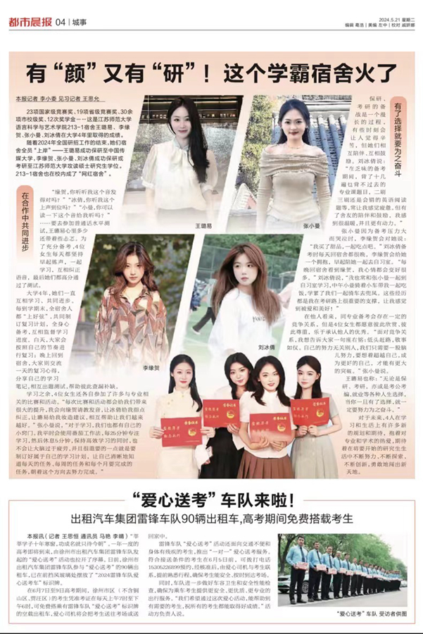 徐州都市晨报5月21日报道(中国)官方网站考研宿舍,报道内容如下: