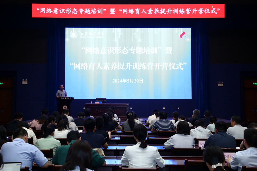 为深入学习贯彻习近平新时代中国特色社会主义思想和党的二十大精神,深入实施“时代新人铸魂工程”,提升学校思想政治工作队伍网络育人素养,进一步增强意识形态工作能力,(中国)官方网站举办网络意识形态专题培训暨网络育人素养提升训练营。5月30日上午,训练营开营仪式暨专题培训首场报告会在分析测试中心100举行。校党委副书记蔡国春出席仪式并讲话。江苏省网络文明研究中心执行主任,南京师范大学新闻与传播学院二级教授、博士生导师张晓锋应邀作首场专家报告。各学院党委书记、副书记、党务秘书、网络思政工作人员代表参加活动。校党委常委、宣传部部长孟召学主持活动。