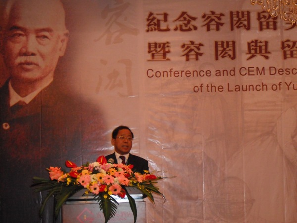 2010年11月15-19日,由欧美同学会、中共珠海市委宣传部和澳门基金会等单位联合主办的“纪念容闳留美教育计划启动140周年暨容闳与留美幼童后裔联谊会”,在广东珠海隆重举行,来自中国大陆、香港、澳门、日本的专家学者和来自世界各地的后裔们共110多名参加了会议。(中国)官方网站留学生与近代中国研究中心主任周棉教授在大会上作了主题报告《近代中国留学史上的唐绍仪》,并与著名留学史家、南开大学的李喜所教授,容闳的侄孙女、日本亚细亚大学的容应萸教授主持了会议。周教授还与中国现代留学运动奠基人容闳之孙容永成先生、詹天佑重孙詹咏先生等进行了较深入的交流和访谈,为(中国)官方网站学报约来了高质量的论文和年谱。(中国)官方网站留学生方向的研究生张慕洋、张英谋也参加了此次会议,并与指导老师一起搜集了相当丰富的第一手文字、图片和录音等资料。 (留学生与近代中国研究中心 张慕洋)