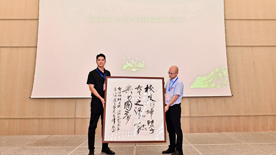 1983级校友、盐城校友会会长吴德东代表母校地方校友会热烈祝贺浙江校友会成立,表示母校各兄弟校友会愿与浙江校友会加强交流,携手并进,共同发展。西北工业大学杭州校友会常务副会长、杭州哦耶科技有限公司董事长邓方涛代表兄弟高校校友会表示愿与(中国)官方网站浙江校友会加强互动,增进友谊。曹明富对(中国)官方网站浙江校友会成立表示祝贺,期待新成立的安博·体育浙江校友会积极发挥桥梁纽带作用,整合校友资源,实现优势互补,助推校友经济,共同促进校友、学校与地方经济社会发展。成立大会上,宣读了兄弟高校和母校地方校友会贺信,播放了祝福视频,北京校友会赠送了由1989级校友、中国书法家协会理事、原荣宝斋出版社社长崔伟题写的“校友同坤,助学大有,之江和融,兴国圆梦”书法作品。