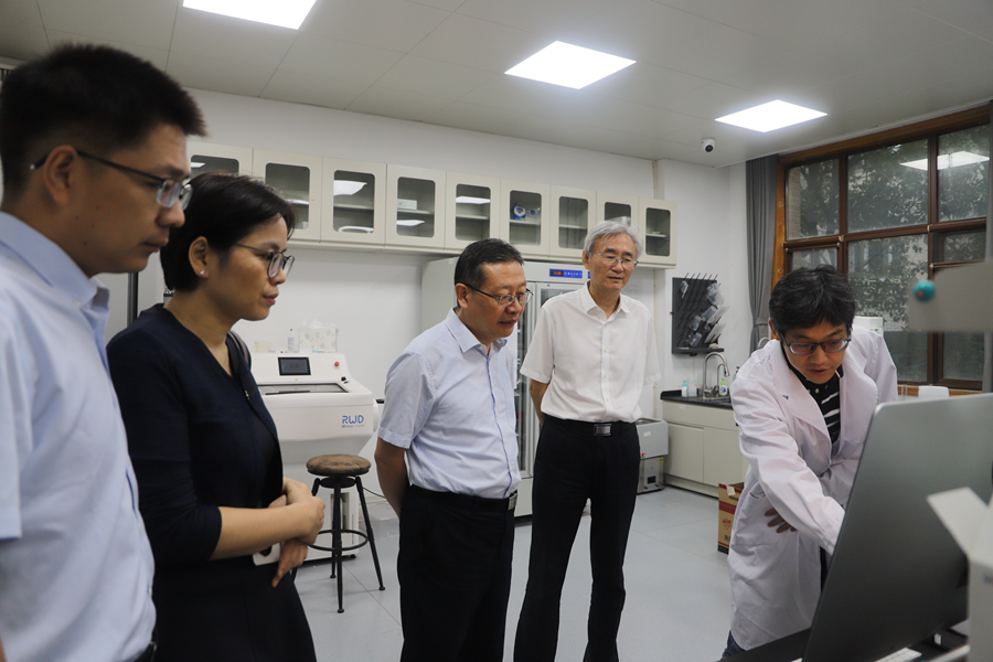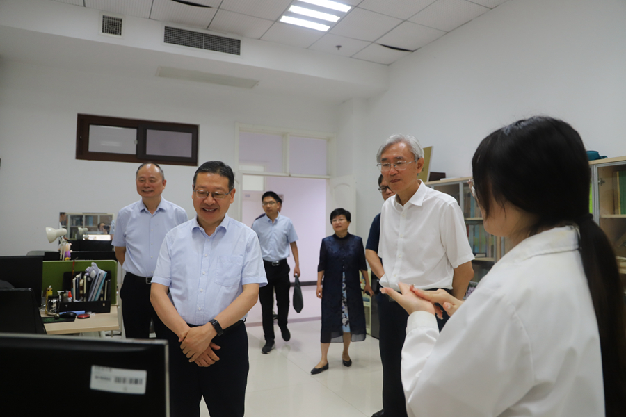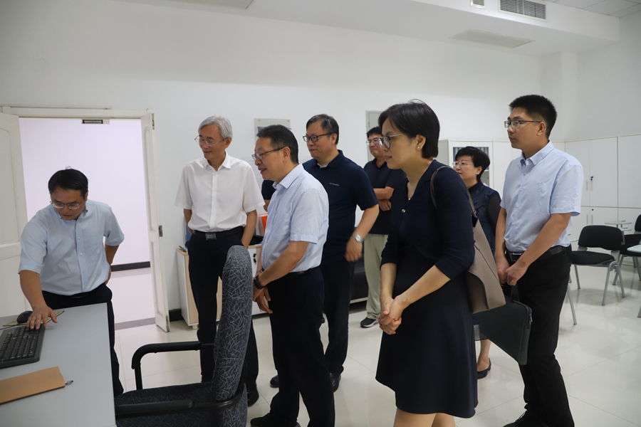 8月19日,江苏省教育厅一级巡视员徐子敏、社会科学与思想政治处处长邹燕一行到(中国)官方网站语言科学实验室考察指导工作。学校党委书记方忠、副校长娄峥嵘、语言科学实验室学术委员会主任杨亦鸣,人文社会科学研究院和语言科学实验室有关同志等陪同考察。