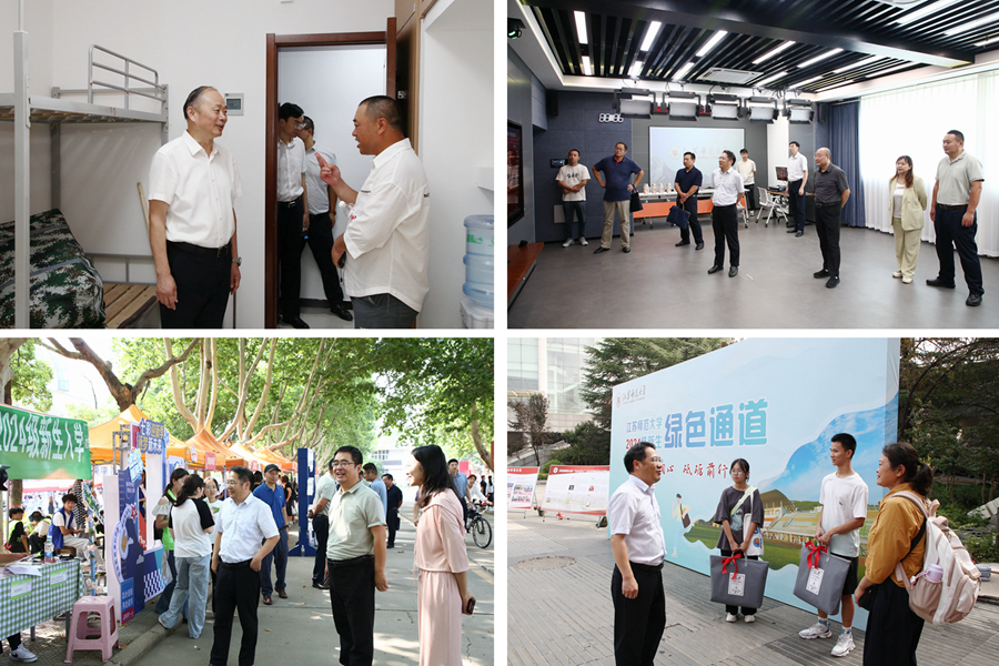 9月8日,校长周汝光一早就率队到学校“爱师大”智慧研创中心,通过数字迎新系统查看新生报到情况。他指出,校园智能化改造升级,为新生报到提供了更多便利,要用好智能化技术,简化报到流程,让学生和家长办理各项手续更加清晰便捷,真正做到精准迎新。之后,周汝光在相关部门负责同志陪同下,来到各学院迎新工作点、学生宿舍、“绿色通道”手续办理工作点,实地查看了新生到校情况,并与新同学亲切交流了到校后的感触和体会。周汝光要求各学院和相关单位,要主动深入到教室、宿舍和食堂,了解同学们的困难和需求,帮助他们克服刚到新环境的不适感,帮助广大同学能尽快转变角色,融入大学生活。