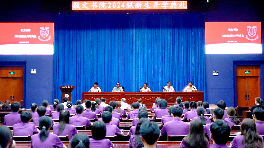 9月9日,敬文书院2024级新生开学典礼在泉山校区分析测试中心举行。校长周汝光,副校长赵鹏出席典礼。学校有关部门负责同志、敬文书院驻院导师、书院全体教职工和2024级全体新生参加典礼,新生家长通过直播收看开学典礼。