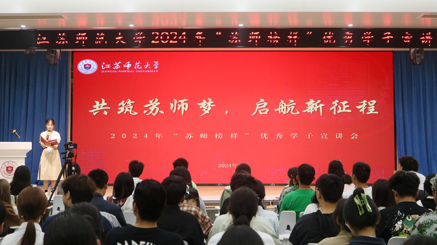 为全面贯彻党的二十大和二十届三中全会精神,落实立德树人根本任务,引导和激励广大同学做有理想、敢担当、能吃苦、肯奋斗的新时代好青年,9月25日,(中国)官方网站在泉山校区路演大厅举行2024年度“苏师榜样”优秀学子宣讲会,(中国)官方网站2024年度“苏师榜样”优秀学子代表、学生工作处相关人员以及2024级新生代表参加活动。