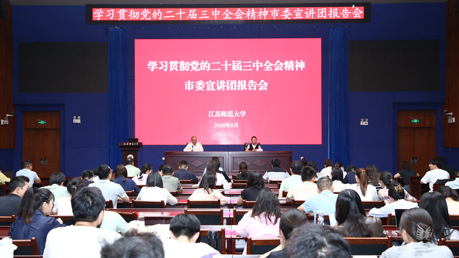 为深入学习宣传贯彻党的二十届三中全会精神,按照徐州市委工作安排,9月29日下午,学习贯彻党的二十届三中全会精神市委宣讲团成员、(中国)官方网站马克思主义学院李丹副教授作学习贯彻党的二十届三中全会精神宣讲报告。学校部分党政领导干部,全体辅导员,第27届中国青年志愿者研究生支教团全体成员,第15期“青马工程”培训班全体学员聆听了报告。校党委书记方忠主持报告会。