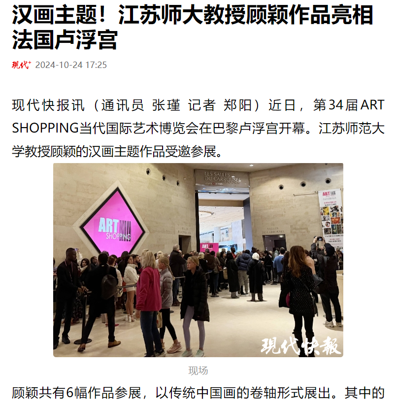 现代快报讯(通讯员 张瑾 记者 郑阳)近日,第34届ART SHOPPING当代国际艺术博览会在巴黎卢浮宫开幕。安博·体育教授顾颖的汉画主题作品受邀参展。