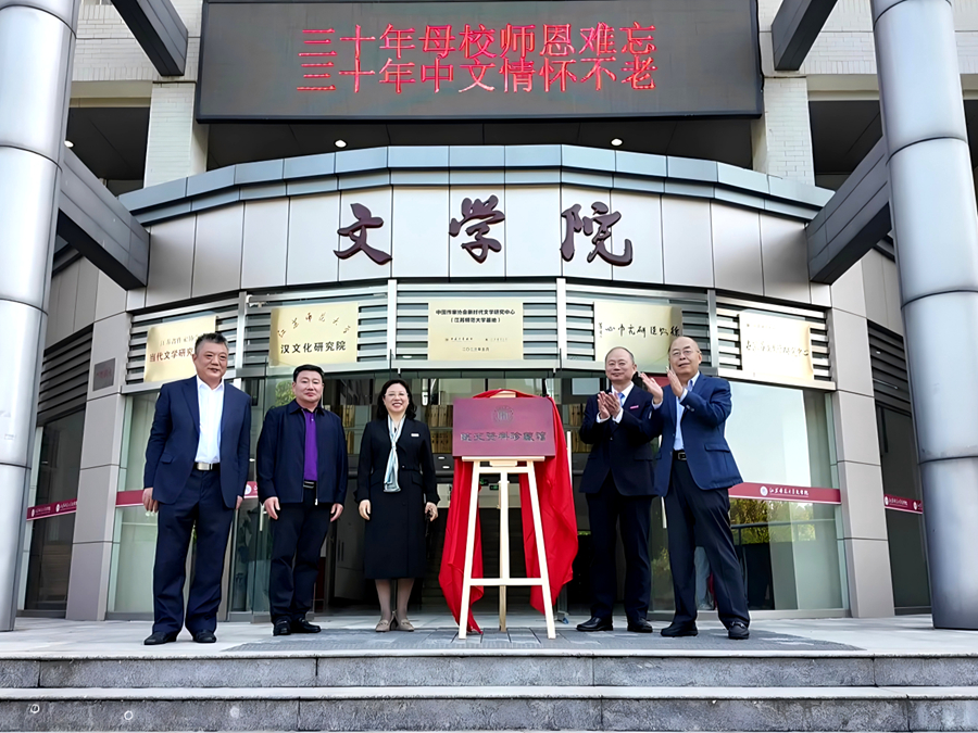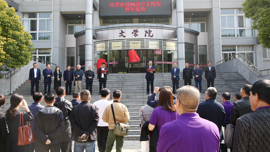 10月26日,(中国)官方网站在西教11号楼前举行文学院院史馆揭牌暨1994届中文校友捐赠仪式。校党委书记方忠、中文系教师代表徐放鸣、寇立光、赵兴勤、吴建民、张淑美,校盐城校友会会长、中文83级校友吴德东,校苏州校友会会长、中文98级校友王建波,中文94届参加秩年返校活动的全体校友出席活动。
