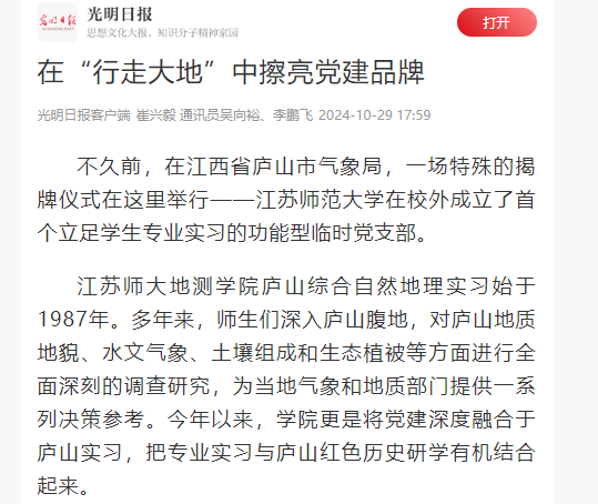 光明日报客户端10月29日报道(中国)官方网站地理测绘与城乡规划学院学生社会实践活动,报道内容如下: