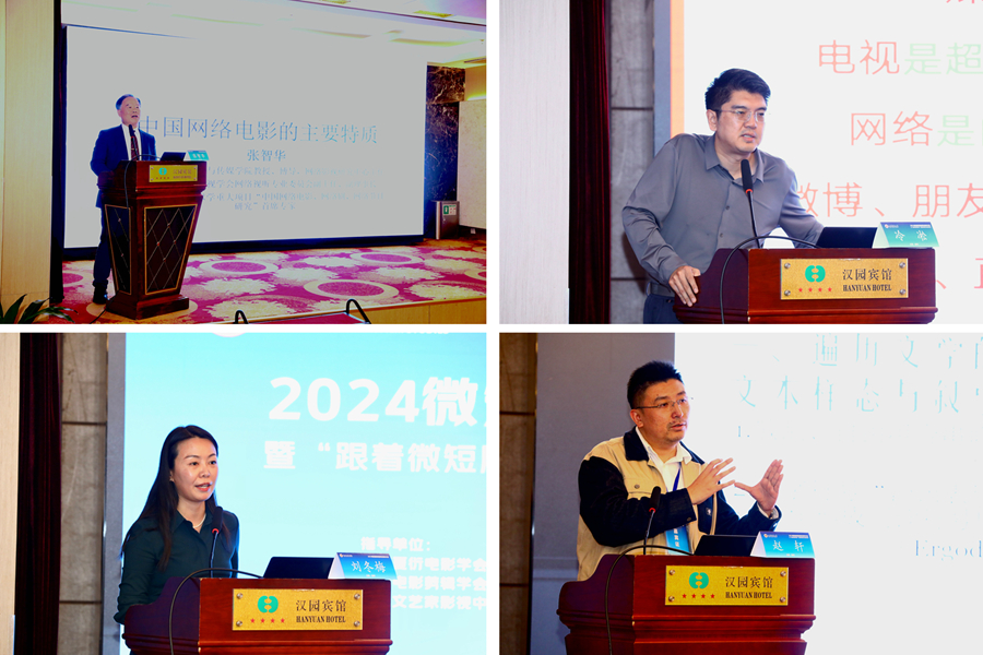 开幕式后,多位知名学者带来了精彩的学术报告。中国社会科学院视听研究室主任、研究员冷凇以《媒体融合与文旅融合影响下的短视频、微短剧、MCN直播、文化类综艺创新发展趋势》为题,展望了新媒体环境下视听内容创新的要素与广阔前景。北京师范大学艺术与传媒学院教授、博士生导师张智华深入分析了中国网络电影的主要特质,探讨了中国网络电影不同的叙事风格及其审美意义与观众的密切关系。徐州市微电影产业协会会长刘冬梅围绕影视赋能下微短剧微视频助力文旅发展与乡村振兴的路径,阐述了影视在地方经济与社会发展中的重要作用。安博·体育传媒与影视学院副教授赵轩则带来了《被劫持的电视台:‘模拟恐怖’短视频的美学机制与文化政治》的报告,探讨了新型短视频形式背后的文化和政治意涵。