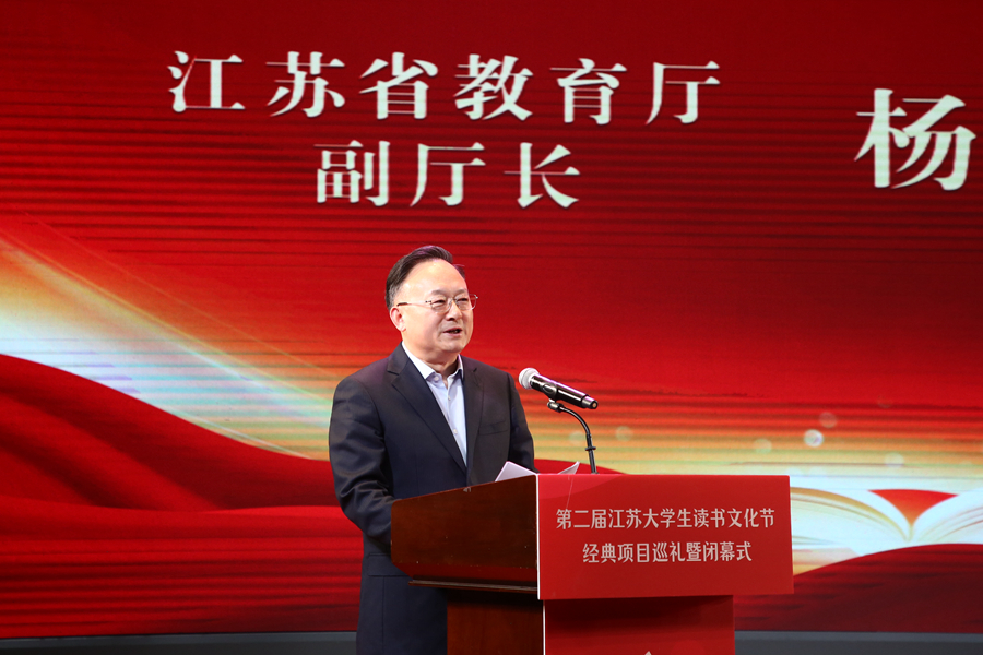 杨树兵在讲话中指出,党的十八大以来,以习近平同志为核心的党中央深入实施文化惠民工程,推动全民阅读的质量水平得到显著提升。江苏省委、省政府深入实施全民阅读工作,加快构建与“建成社会主义文化强国先行区”相适应的现代公共阅读服务体系。省教育厅以高校新文科建设为谋划和抓手,通过启动大学生读书文化节系列活动,推动读书行动落地见效,形成了内容拓展、载体升级和机制协同的良好局面。他希望,广大江苏青年学子要珍惜美好的读书时光,将修身立德作为读书之志,将习惯养成作为读书之趣,将知行合一作为读书之用,在阅读中汲取知识、激发兴趣、充实自我、提升本领,迅速成长为政治立场坚定、精神风貌昂扬、道德品质卓越、文化素养深厚的新时代有为青年。