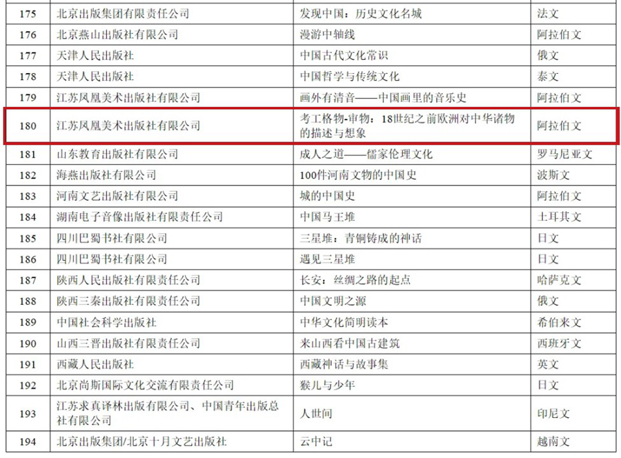 本次成功申报项目《审物:18世纪之前欧洲对中华诸物的描述与想象》,是潘天波教授所著《考工格物》(全5卷含《齐物》《赀物》《审物》《润物》《开物》,江苏凤凰美术出版社)系列图书的一种,该书系曾成功入选2022年国家出版基金资助项目,荣获江苏省新闻出版局、江苏省出版协会“2023苏版好书”,并入选2024年第3期人文社科“中文原创好书榜”。这是潘天波教授继《漆彩——丝绸之路与中国漆器》入选世界著名出版集团——德国施普林格出版集团(Springer Group)2023年“一带一路”出版合作典型案例项目(黄山书社,输出文种为英文)之后,又一成果“走出国门”,是(中国)官方网站在国家“走出去”重点图书翻译项目领域的重要突破,展示了(中国)官方网站在用活用好中华优秀传统文化资源、讲好中国故事、传播好中国声音方面的研究实力,为促进中外文化交流与互鉴作出了积极贡献。
