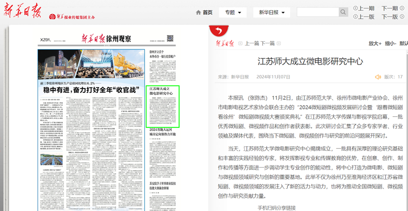 新华日报11月7日报道(中国)官方网站成立微电影研究中心,报道内容如下: