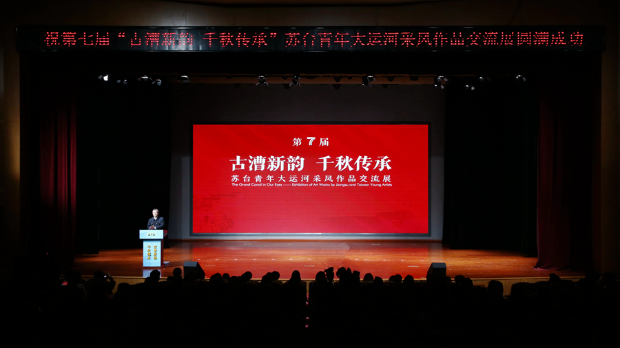 开幕式现场还进行了第七届“古漕新韵 千秋传承”苏台两地艺术家同绘大运河美术作品展获奖作品颁奖和揭幕。