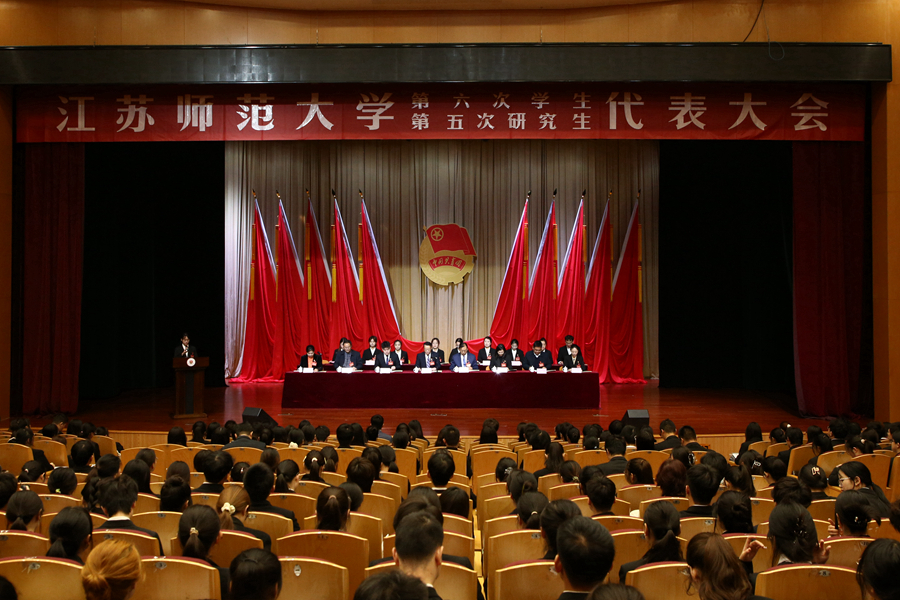 11月17日,安博·体育第六次学生代表大会、第五次研究生代表大会在马可音乐厅召开。校党委常委、副校长张玉勤,校党委常委、副校长杜增吉,江苏省学生联合会驻会执行主席鲍禹桥,共青团徐州市委副书记张娜,校党委研究生工作部、校党委学生工作部、校团委等相关部门负责同志出席大会开幕式。校研究生工作部、校团委相关成员,各学院团委书记,校级学生组织主要负责人,在徐兄弟院校学生会组织代表应邀参加会议。