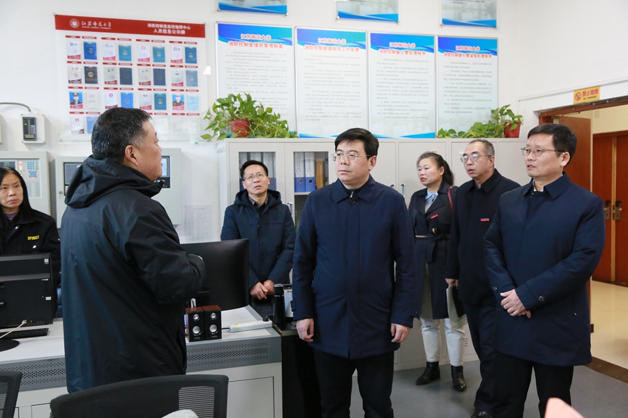 汇报会结束后,检查组仔细查阅了学校安全工作台账资料,并先后来到物理与电子工程学院实验室、消控指挥中心、泉山校区东大门、110指挥中心、玉泉河餐厅等重点部位和场所现场检查。检查组充分肯定了学校在消防安全隐患排查整治、实验室安全管理、校园技防能力建设及全覆盖开展安全教育演练等方面取得的成绩,并就进一步做好校园安全管理工作提出意见和建议。