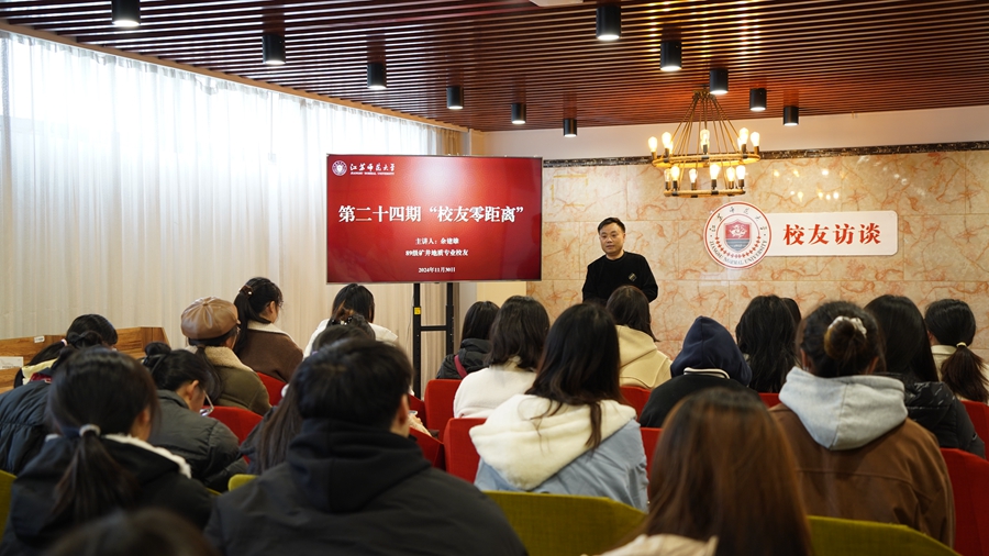 11月30日上午,第二十四期“校友零距离”在泉山校区举行。89级矿井地质专业校友、贵州黔野鲜踪科技有限公司总经理余建雄做客活动,与在场同学互动交流。