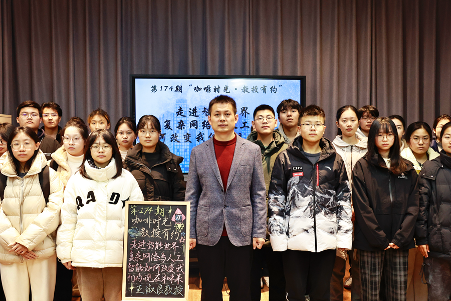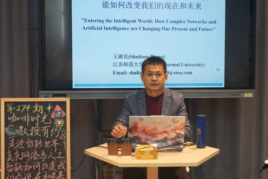 12月5日下午,第174期“咖啡时光·教授有约”活动在泉山校区三食堂六点汇举行。电气工程及自动化学院王淑良教授就“走进智能世界——复杂网络与人工智能如何改变我们的现在和未来”这一主题与在场同学进行交流。