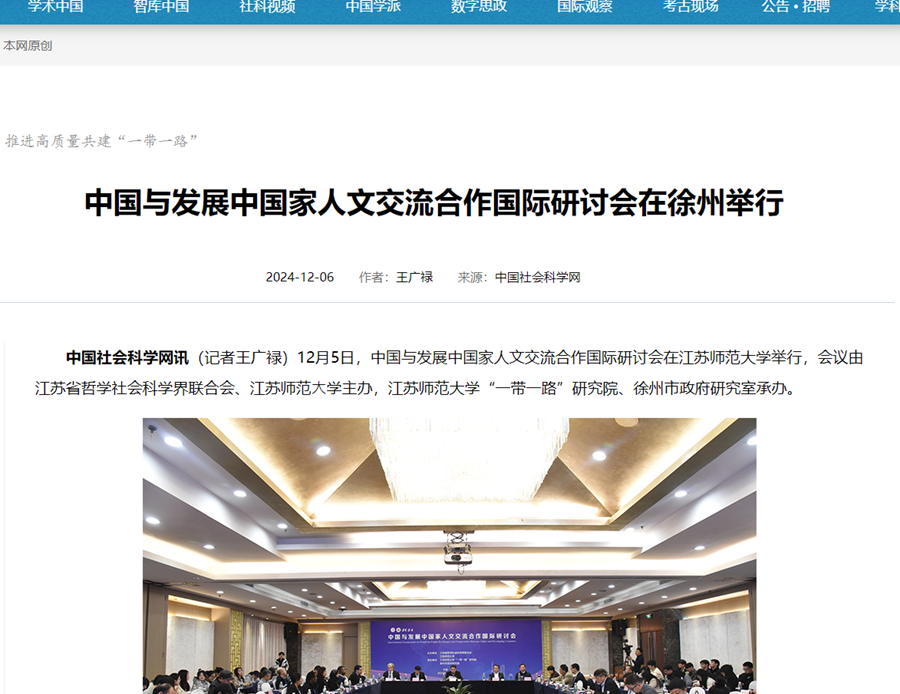 中国社会科学网讯(记者王广禄)12月5日,中国与发展中国家人文交流合作国际研讨会在安博·体育举行,会议由江苏省哲学社会科学界联合会、江苏师范⼤学主办,安博·体育“一带一路”研究院、徐州市政府研究室承办。