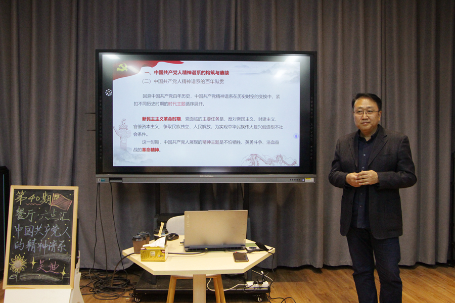 12月28日下午,第40期“餐厅·六点汇”活动在泉山校区“餐厅·六点汇”实践基地举行。公共管理与社会学院党委书记吴迪就“中国共产党人的精神谱系”这一主题与在场同学进行交流。