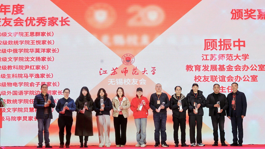 活动伊始,无锡校友会精心制作的主题视频《同一首歌》,以“一条路,同一首歌”为主线,串联起校友会20年的发展历程与校友们的共同记忆。无锡校友会会长郑磊在致辞中表示,从2005到2025,在广大校友的积极参与和努力下,无锡校友会始终坚持服务校友、服务母校、服务社会的办会宗旨,开展了系列活动,收获了很多感动,未来将继续搭建服务平台,助力校友成长与母校发展。颁奖典礼上,芮国强、商亮等领导和嘉宾分别为无锡校友会“20周年荣誉人物”和2024年度“优秀校友”“优秀家长”“优秀学生”颁奖。